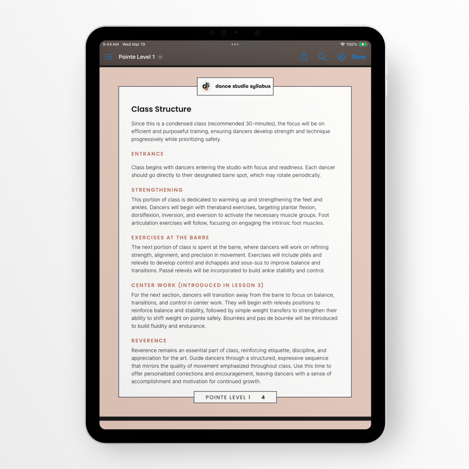 - Pre-planned lesson structures with built-in reinforcement of foot positions and turnout concepts