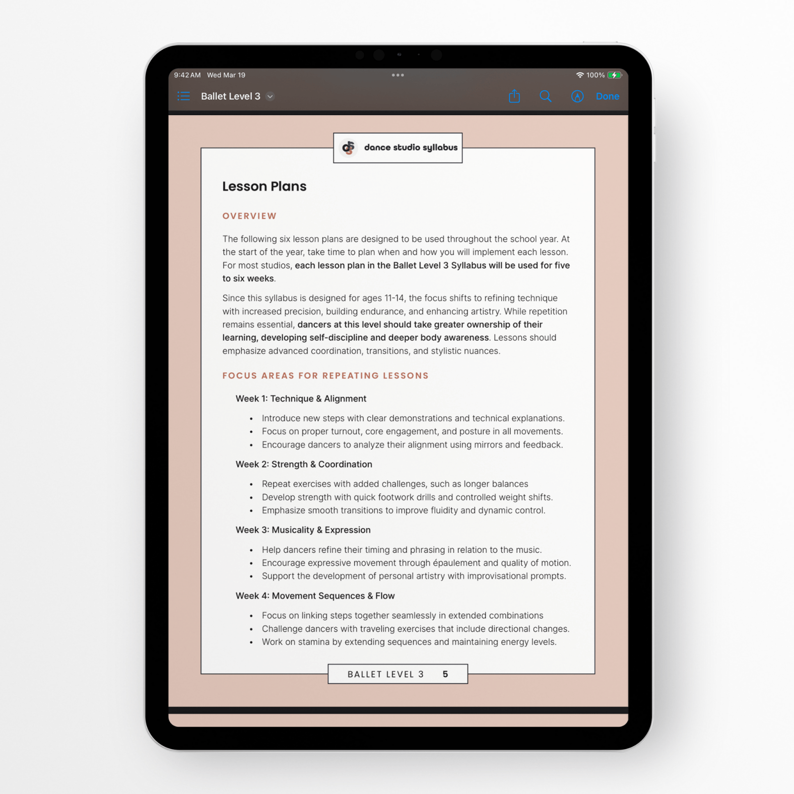 - Pre-planned lesson structures with built-in reinforcement of foot positions and turnout concepts